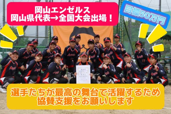 2010年創部、岡山県内で活動する女子中学生ソフトボールチーム「岡山エンゼルス」です。この度の支援金は、大阪府で開催される全国大会の遠征費及び団活動費に充当させ...