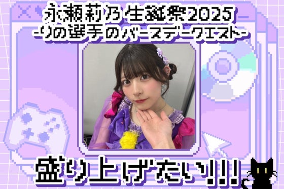 2025年8月1日開催予定の スプスラッシュ『永瀬莉乃生誕祭』を、ファンの皆様そして永瀬莉乃本人にとっても最高の時間にするために、より盛大にお祝いできるようご支...