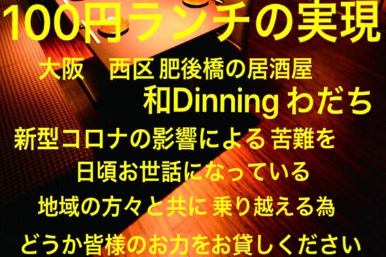 100円ランチを実現することにより、お世話になっている地域の方々の助けになりたい。現状ご提供させて頂いているクオリティを一切落とさず、目標の70万円で500円ラ...