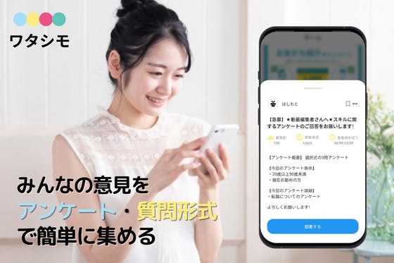 「ワタシモ」は、みんなの意見をアンケートや質問で簡単に集めることができるアプリです。多様なトピックに関するアンケートを作成し、シェアして意見を収集できます。使い...