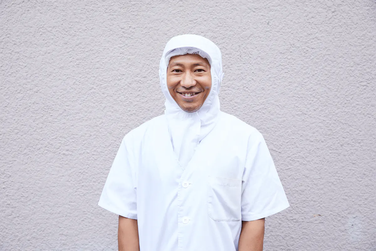 私が四代目五家宝職人になるのを決めたのはが二十七歳の時。家業に入るきっかけとなったのは、八十六歳まで現役で職人をしていた祖父が脳梗塞で倒れたのがきっかけです。当時、廃業も考えていたそうですが、病室で、半身麻痺、言語障害になりながらも、病床で動く方の手を使って、祖父は私に五家宝の作り方を教えてくれました。 その姿に、五家宝職人を継いで欲しいという強い思いを感じ、家業を継ぐことを決心したのです。私が入社するのと同時期に祖父は他界してしまいましたが、祖父の思いを受け継ぎ、伝統菓子、五家宝の文化を本気で広く伝えていこうと心に決めました。 趣味はサーフィン、興味があることはキャンプ