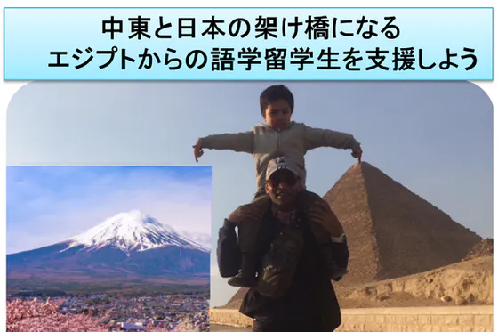 代表者は在日エジプト人であり、現在にエジプトからの語学留学生をビザ取得手続から支援しています。 今回のプロジェクトは、直接的には、語学留学生3名を援助するものですが、それを通じて日本とエジプトの両国にとっての利益になることを目指しています。