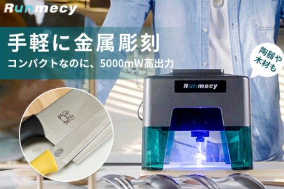 Runmecyは高速印刻モードにより、簡単な文字やアイコンなどはわずか数十秒で完成!強力かつ繊細な技術を用いて、木製ボードの切断やステンレス素材への刻印が可能と...