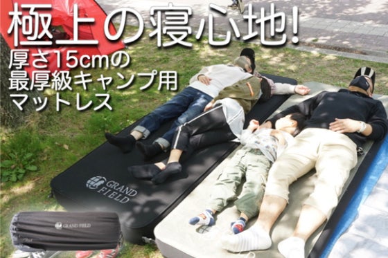 ・厚さ15cmのマットレスで地面のデコボコ、冷気を遮断し快適に眠れる・ストレッチ生地とウレタンフォームで包み込まれる様な寝心地・自動膨張機能で手間なく簡単に使える