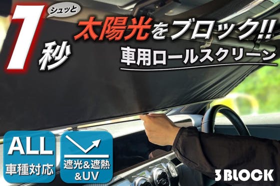 【車用ロールスクリーン3BLOCK】セットは片手で1秒下ろすだけ!ボタンを押すだけ自動で収納!遮光率&UVカット99%!強遮熱素材で車内温度上昇を抑制。光、熱、...