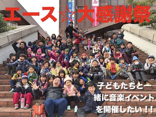 一般社団法人エースあそびの学校創立1周年の音楽イベントをフリーライブで開催したい!!子どももおとなもみんなが楽しめる体験型音楽イベントです。先生たちが演者に!!...
