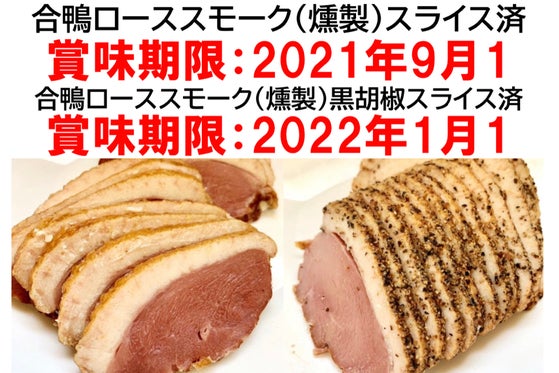 賞味期限2021年9月1日 合鴨ローススモーク・スライス済、600kg分がキャンセルが入ってしまいました。賞味期限2021年1月1日 合鴨ロースパストラミ・スラ...