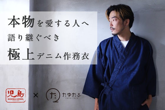 デニムの街岡山県児島で作るmade in Japanの本藍作務衣。生地は海外のハイブランドでも使われるデニムメーカークロキの「和魂藍」使用。デニムのプロ「児島ジ...