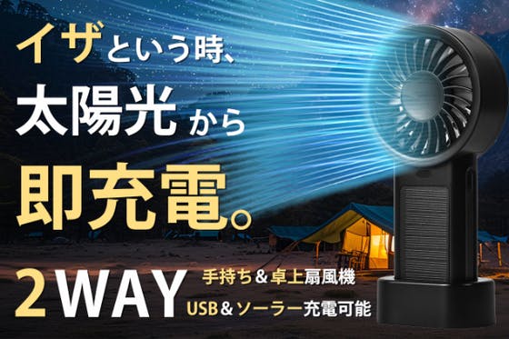 太陽光で即座に充電できるハンディファン「AeroSol」。コンパクトなのに、最大6m/sの強力な風で猛暑を吹き飛ばします。ソーラー充電対応で、電池切れの心配なし...