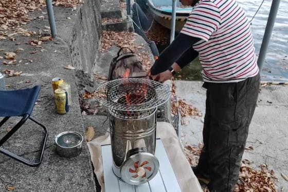 世界初の。火起こし=>調理=>火消し=>そのまま持ち帰り=>炭再利用 が全部オールインの製品です。 二段階着火方式世界採用 ソロアウトドア ソロ炭火BBQ お庭...
