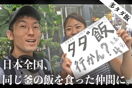 多数の他人がタダ飯に集う『多タダ飯』は「日本全国、同じ釜の飯を食った仲間に」を掲げ、渋谷のスクランブル交差点を中心に活動中。発起人である大和が自腹を切り、参加者...