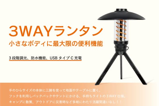 手のひらサイズの本体に三脚を使って地面やテーブルに置く、フックを利用しバックパックやテントにかける、手持ちライトの3WAY仕様 キャンプに散策、アウトドアに災害...