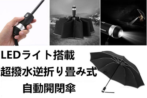 雨の日に電車やお店の中に濡れたままの傘を持ち込んで気まずい思いをした、そんな経験ございませんか? 片手でワンタッチ開閉逆折り畳傘は超強撥水性素材を採用し、夜道...