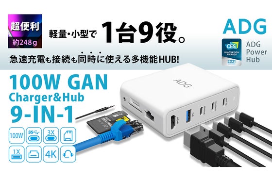 ★超便利!100W 9-in-1 チャージャ&ハブ。9つのポートが同時使用可能で仕事効率アップ!★4台同時急速充電可能!多数のデジタルデバイスを所持する現代人の...