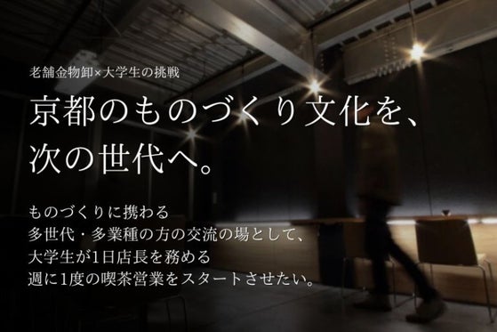 伝統工芸分野における需要の低迷や担い手不足等の社会課題解決へのアプローチとして、京都烏丸にある「ギャラリー京烏」にて、大学生が日替わり店長を務める週に1度の喫茶...