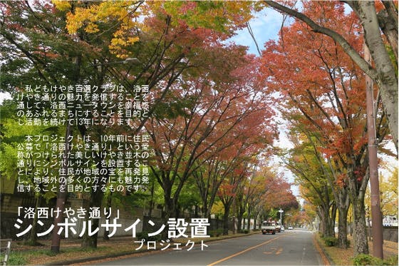 洛西ニュータウンで最も魅力のある通りと言われる「洛西けやき通り」。住民公募によって「洛西けやき通り」の愛称が付けられてから10年になるのを記念して、シンボルサイ...