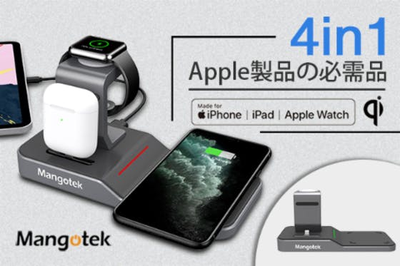 お持ちの機器をひとつにまとめる 4in1ワイヤレス充電スタンド「Mangotek」MFi認証だからApple製品との相性バッチリ!急速充電対応でスピードも速く、...