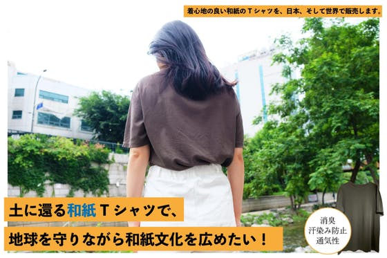 日本の服工場とタッグを組み、吸収、消臭、汗シミを防ぐ和紙で、いつでもさらさらと肌心地良いTシャツを作ります。多年生植物であるマニラ麻で和紙から糸まで制作していて...