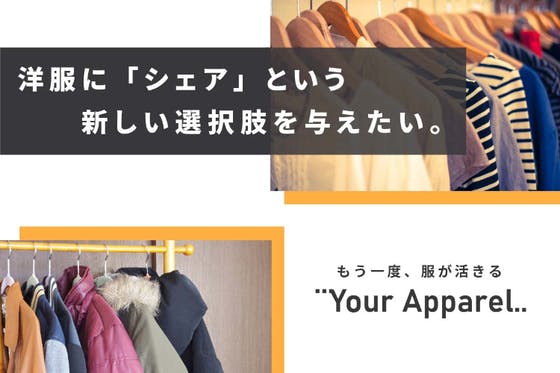 クローゼットや倉庫で眠っている、着られていない服はありませんか? シェアリングエコノミーは、「あなたの服」にも新しい活躍の場を提供します。 Your Apparelは、衣類をシェアするサービスを通して、 「あなたの服」に関する、新たなアタリマエを生み出します。