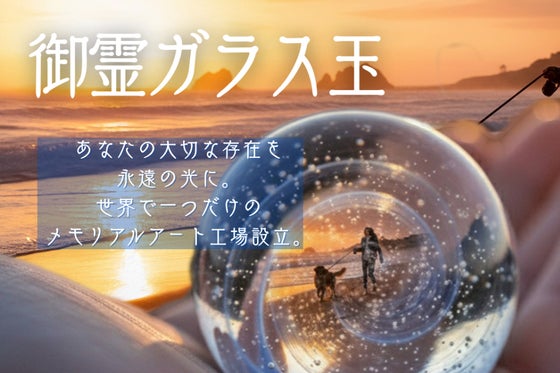 大切な命の欠片を透明な光の結晶へと変える完全オーダーメイド、世界で一つだけメモリアルオブジェに加工する新しい再生アート産業を創出します。来年、専用ガラス工場を設...