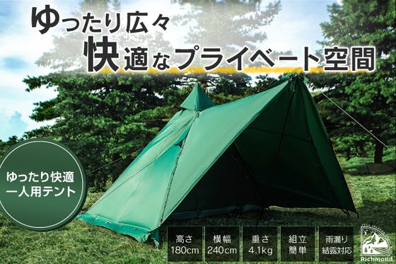 立ったまま入れる高さ180㎝のソロテント。荷物も余裕な横幅240cmで大人の男性も圧迫感無し。扇風機を取り付け可能な通気口と雨風を凌ぐテントスカートも完備。四季...