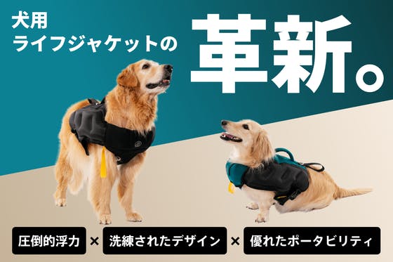 愛犬と飼い主の水遊びシーンを考え抜いた、こだわりのライフジャケットができました。圧倒的な浮力と数々の安全設計で、水難事故を未然に防ぐだけでなく、従来のライフジャ...