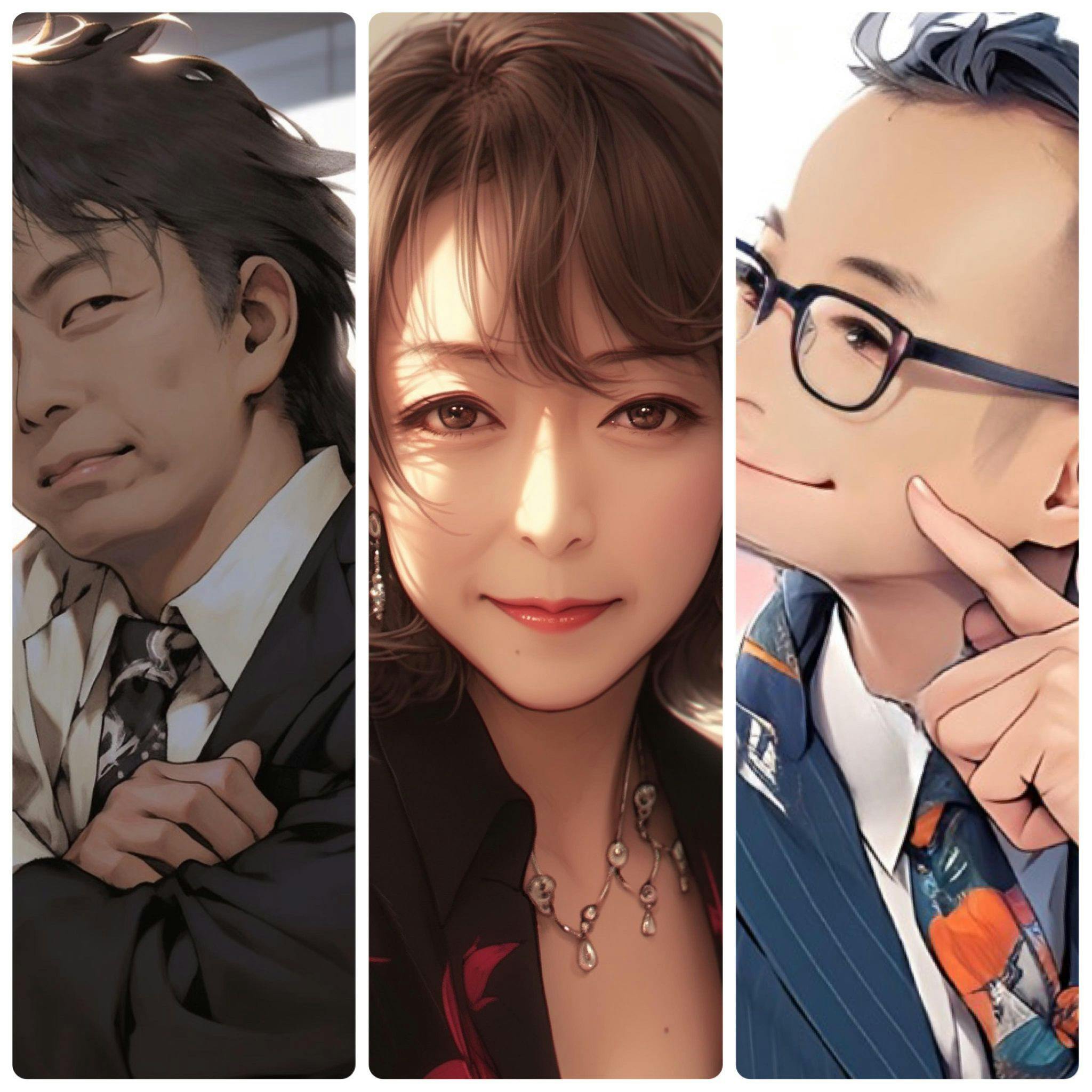3人の著者紹介。 【新岡優子(にいおかゆうこ)】 IT業界歴20数年、組織開発領域の経験15年。 ライバルは20代の二人の息子。 彼らに負けないために、日々、切磋琢磨して日本の中小企業のために奔走する。 自称:AIおばさん。 【寺下薫(てらしたかおる)】 三重県伊勢市出身。 外資系企業、Yahoo! JAPANを経て、2019年に独立。 現在は、コンサルティングや研修、講演など、企業のお困りごと解決のお手伝いをする。 【松山将三郎(通称ザブロー)】 神戸生まれ岡山育ち44歳。 家族は嫁と子供と猫1匹。 パチスロ会社・IT会社を経て34歳でIT会社を創業。 AIをフル活用して「働く」を「ゲーム化」するプロジェクトを敢行中!