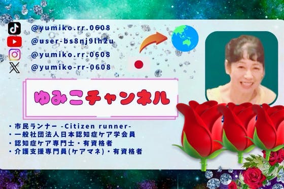 市民ランナー、日本陸連マスターズ登録者 一般社団法人認知症ケア学会員 認知症ケア専門士・有資格者 介護支援専門(ケアマネ)・有資格者 介護福祉士・有資格者 独身女性 TikTok @yumiko.rr.0608 Instagram @yumiko.rr.0608 YouTube @user-bs8nj9lh2u X @yumiko_rr_0608