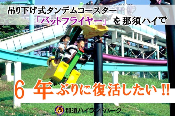 弊社で運営する遊園地「那須ハイランドパーク」に日本で唯一(※1)現存する2人乗り吊り下げ式タンデムコースター「バットフライヤー」の復活をしたい。※1 当社調べ