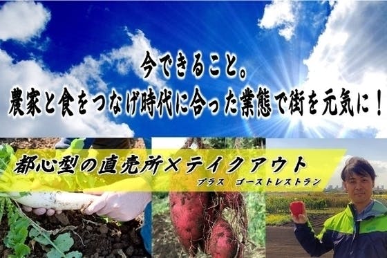 農家直送の野菜をウリにした都心型の直売所×テイクアウト店を出店します!10年前、直売所で購入したおじさんのトマトや胡瓜の味に感動!それ以来、畑の景色や新鮮な野菜...