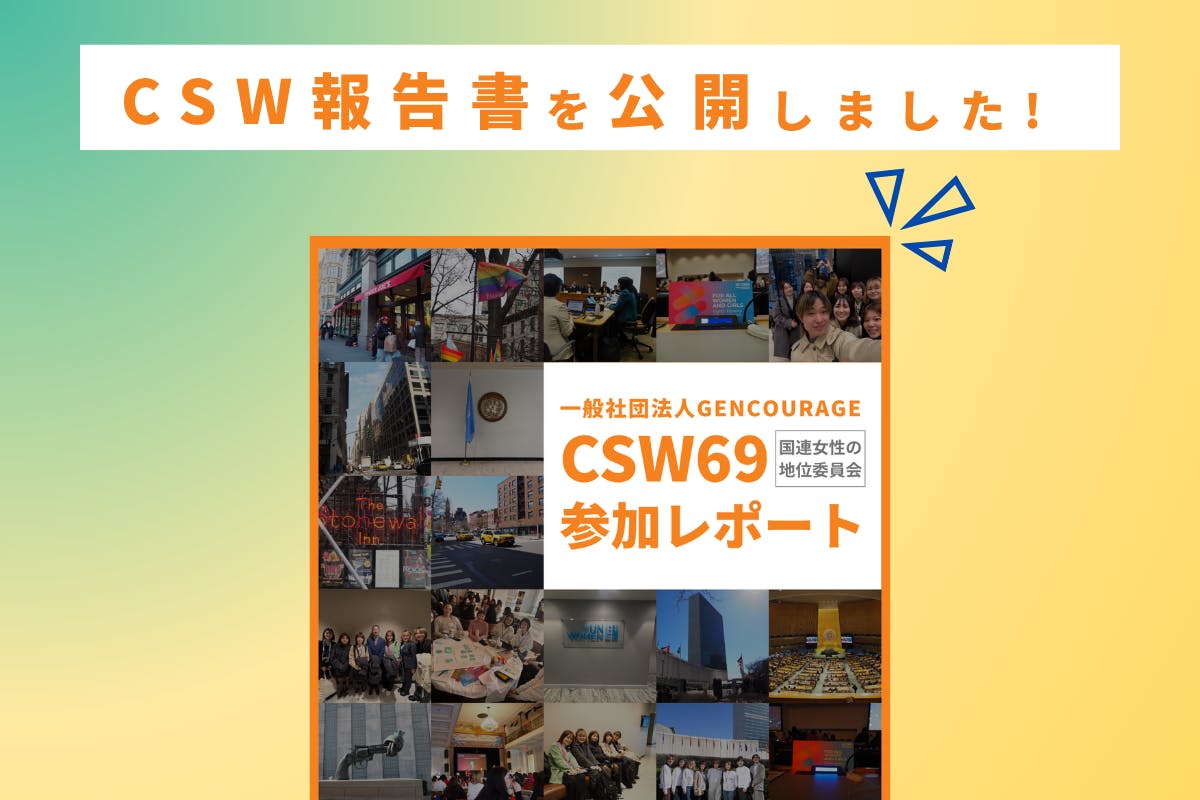 2025/08/06 20:30ご支援者の皆さまいつも温かい応援ありがとうございます。一般社団法人GENCOURAGEです。このたびは、ご支援、本当にありがとうございました。皆さまのお力添えにより、私たちは2025年3月にニューヨーク国連本部で開催された「第69回国連女性の地位委員会(CSW69)」へ参加し、かけがえのない経験を積むことができました。このたび、CSW69の参加報告書を公開いたしました。参加メンバー個人の現地での学びや活動の様子、そして今後に向けたアクションへの思いを、一人ひとりが記しています。ぜひご覧いただけますと幸いです。▼報告書はこちらhttps://drive.google.com/file/d/1ELYu6zl2wahrnTiupKFxvxNnv3EDAzwE/view?usp=sharing皆さまのご支援が、若者たちの成長と社会へのアクションの大きな原動力となっています。今後ともどうぞよろしくお願い致します。 もっと見る