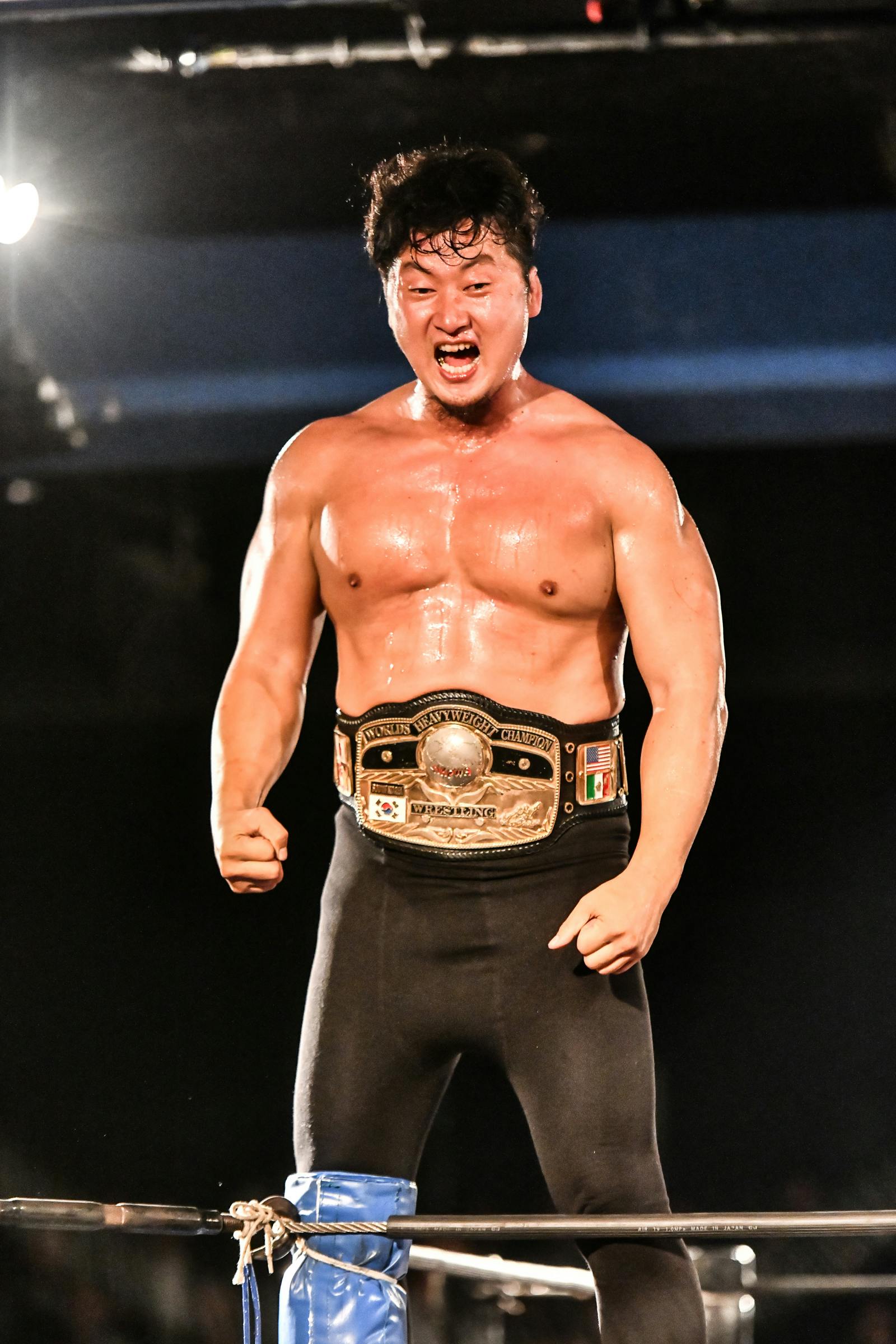 2018年9月27日の TCW旗揚げ興行(新宿FACE)にて 西村修からNKPWAヘビー級ベルトを奪取
