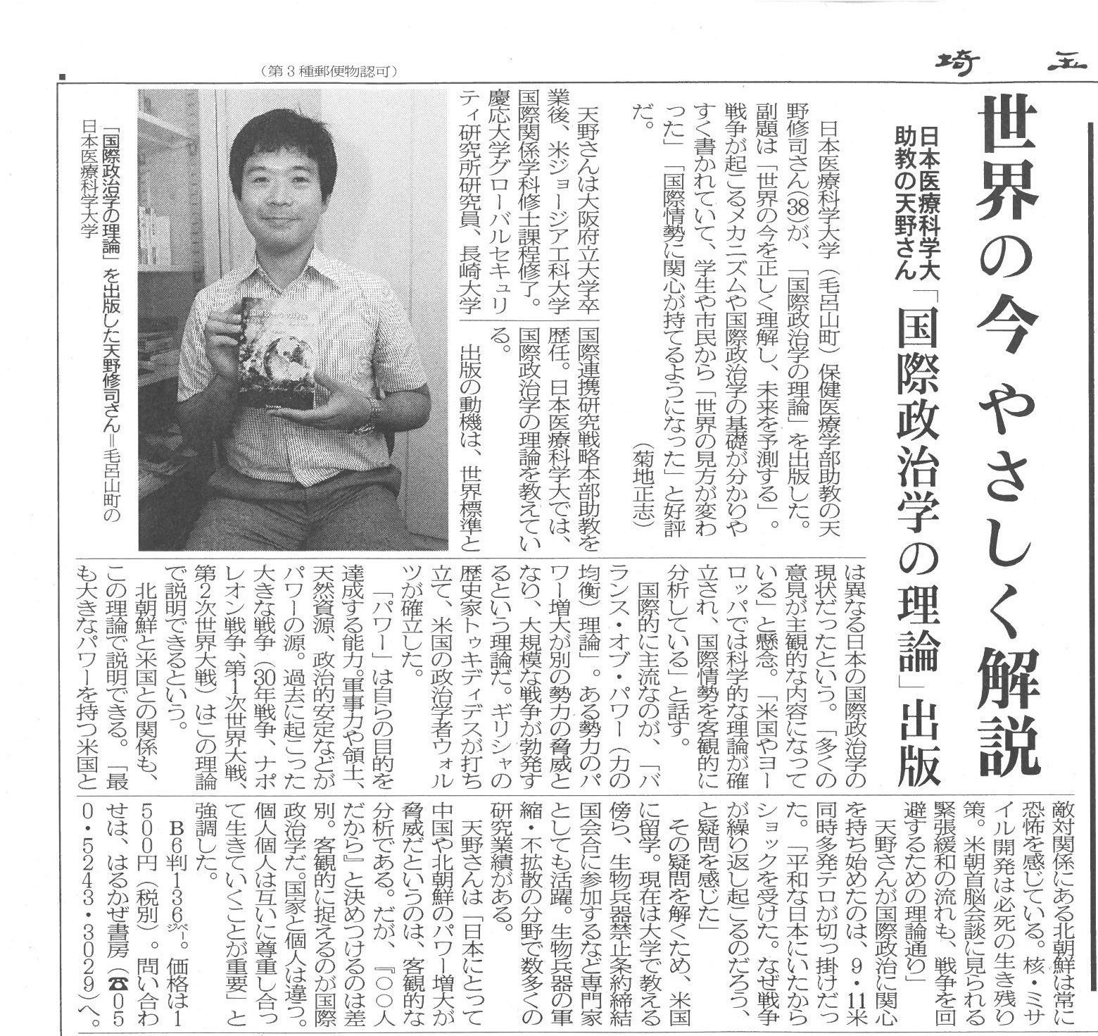 はじめまして。天野修司と申します。私は、医療系の大学で国際政治学の理論を教えています(科目名は、「国際関係論」)。その講義は、とても人気があって、学生からは「世界の見え方が変わった」や「国際情勢に関心が持てるようになった」という感想を多くいただいております。一般の方を対象とする公開講座も精力的に行ってきましたが、もっと多くの方に国際政治学について知ってもらいたいと思い、2018年6月に著書を出版しました。