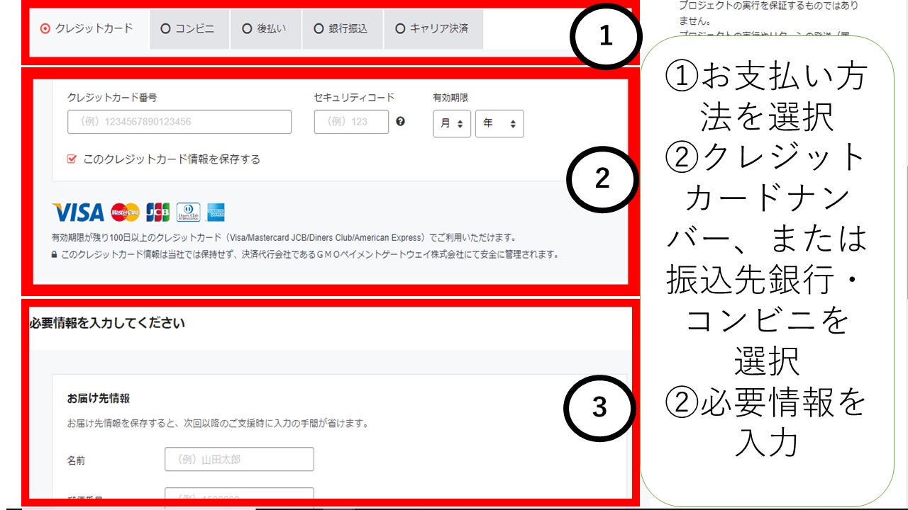 キャンプファイヤーに会員登録をしたのちに、お支払いの手続きをしていただきます。