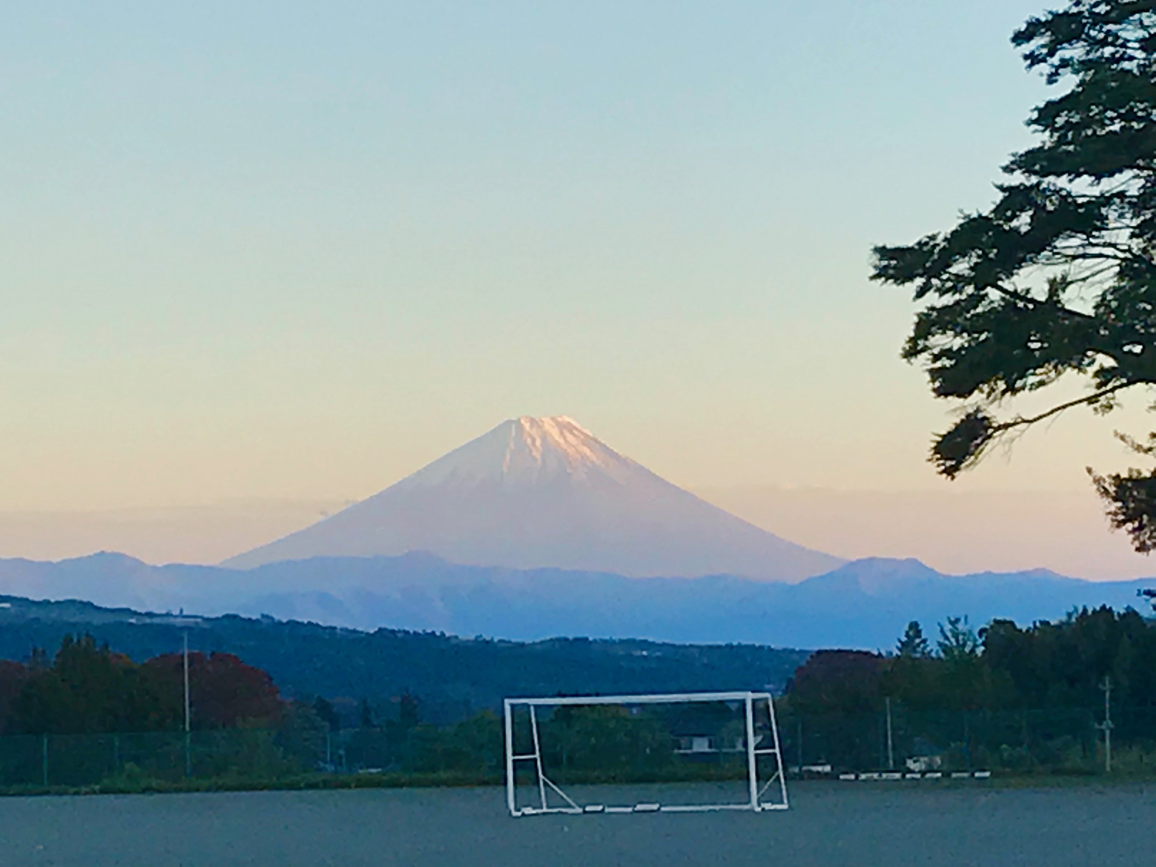 写真は、贈呈式が行われた山梨県北杜市高根東小学校から見える富士山です。
