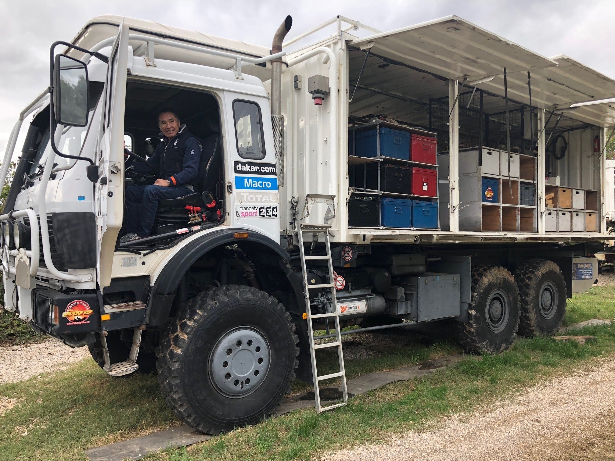 今回のレースでは、メルセデスベンツの六輪駆動のトラックをレンタルします。