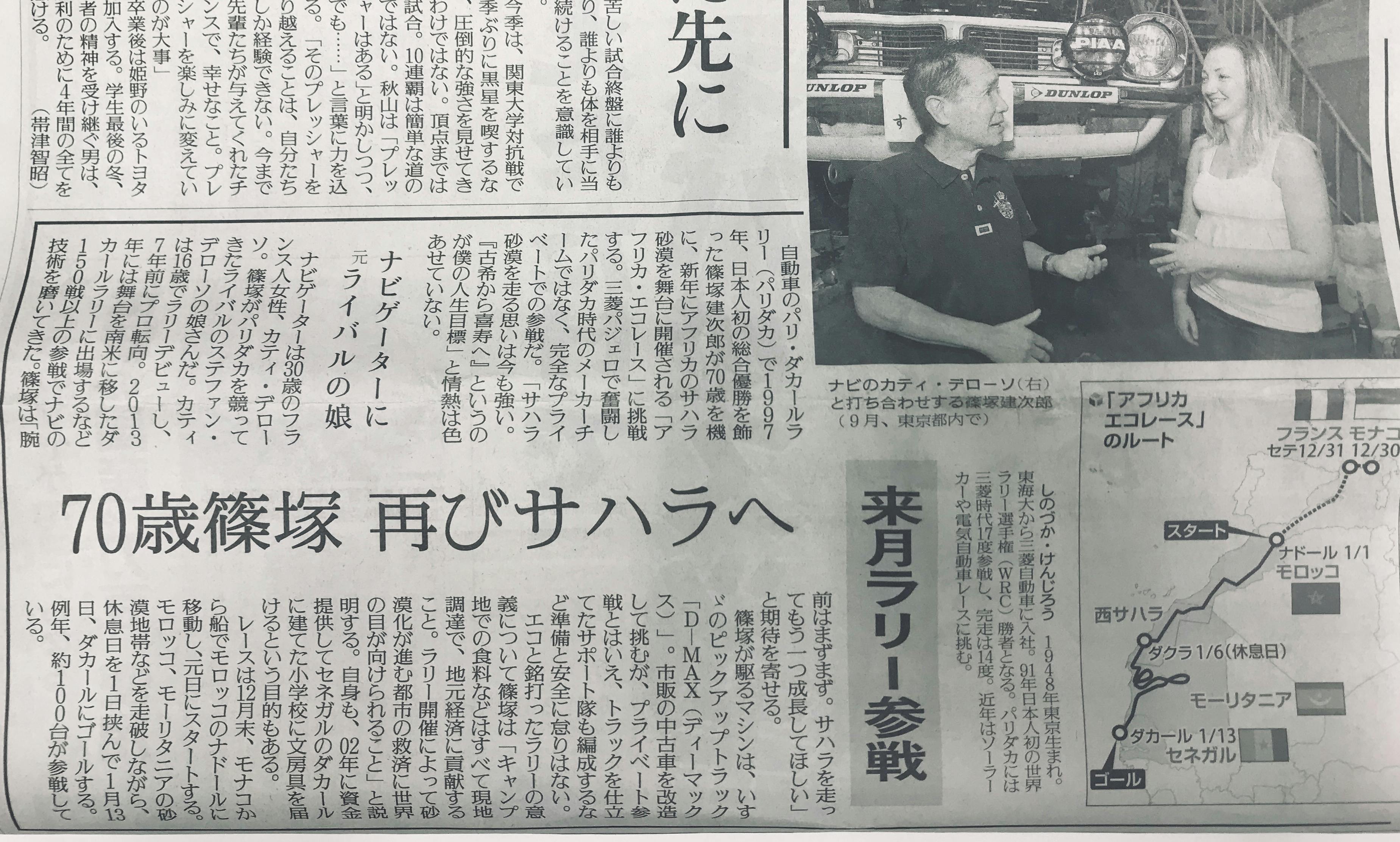 他にも、記事にはナビゲーター カティの写真や、アフリカエコレースのコース地図も掲載されています。