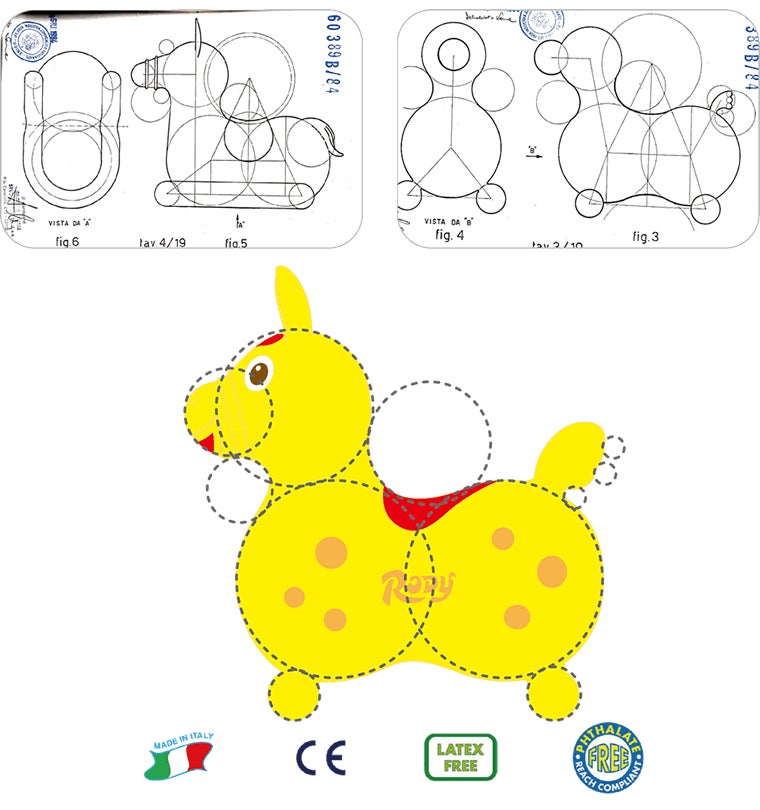 ロディに乗り遊ぶことで、子供が早期の段階から平衡感覚、力の調整、正しい姿勢と筋緊張を改善し身体に有益な経験をさせることができる玩具です。 -Ledraplastic S.p.A-