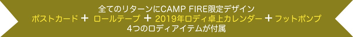 全てのリターン(乗用ロディを含むリターン)にはCAMP FIRE限定デザインのロディアイテムが付属いたします。