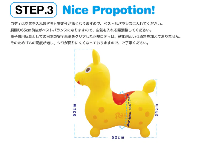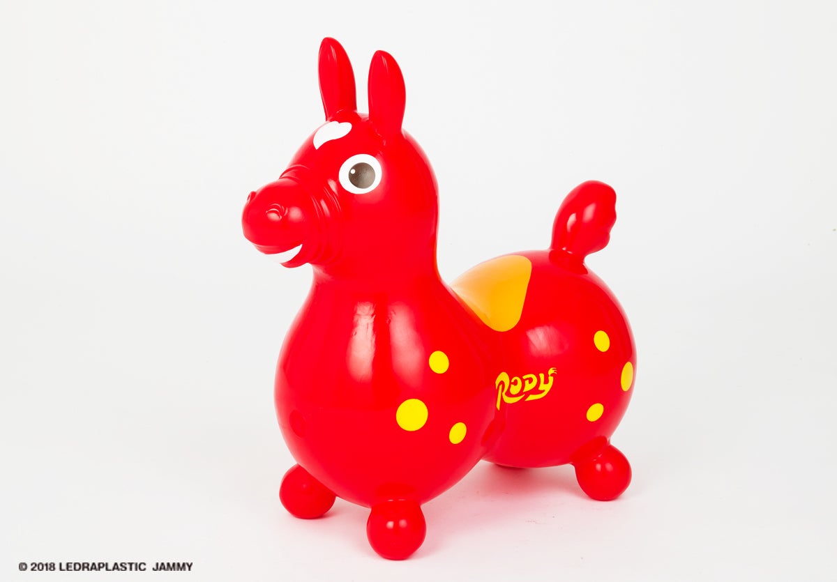 ロディは馬をモチーフにバランスボールの製造技術を用いて作られた乗用玩具です。