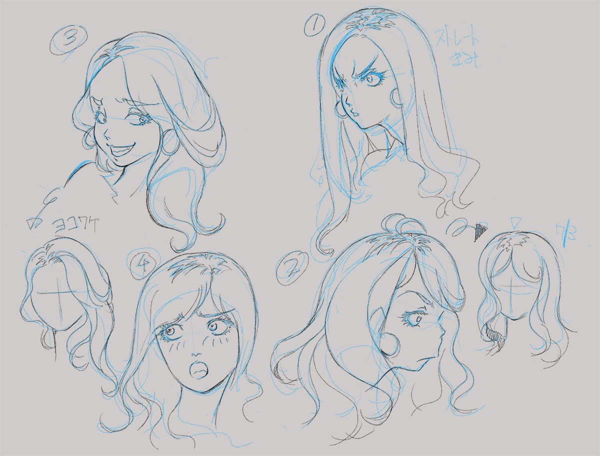 このように表情や髪型を複数描き起こしてみて、どれがイメージに近いかというのを開発メンバーでディスカッションしながら進めています。
