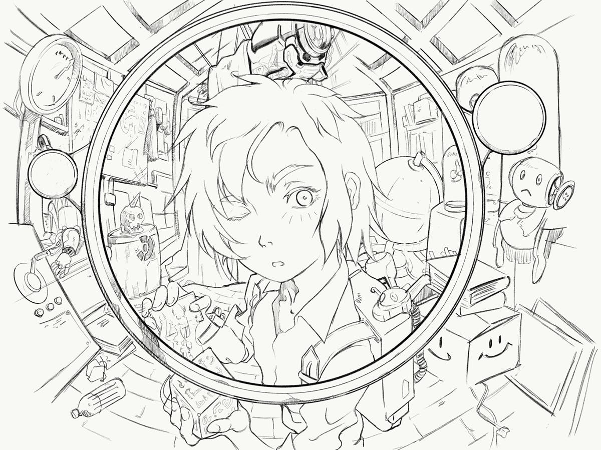 本日は、社内のゲームクリエーターmonさんこと、門脇が描き起こしたプレストーリーの主人公となる与語響(よご・きょう)のキービジュアルのラフを公開します。
