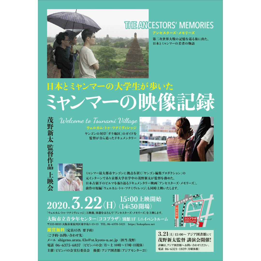 今月末に大阪で行われる「ウェルカム・トゥ・ツナミヴィレッジ」と「アンセスターズ・メモリーズ」の上映会、およびそれに先だつ講演会をご案内させていただきます。
