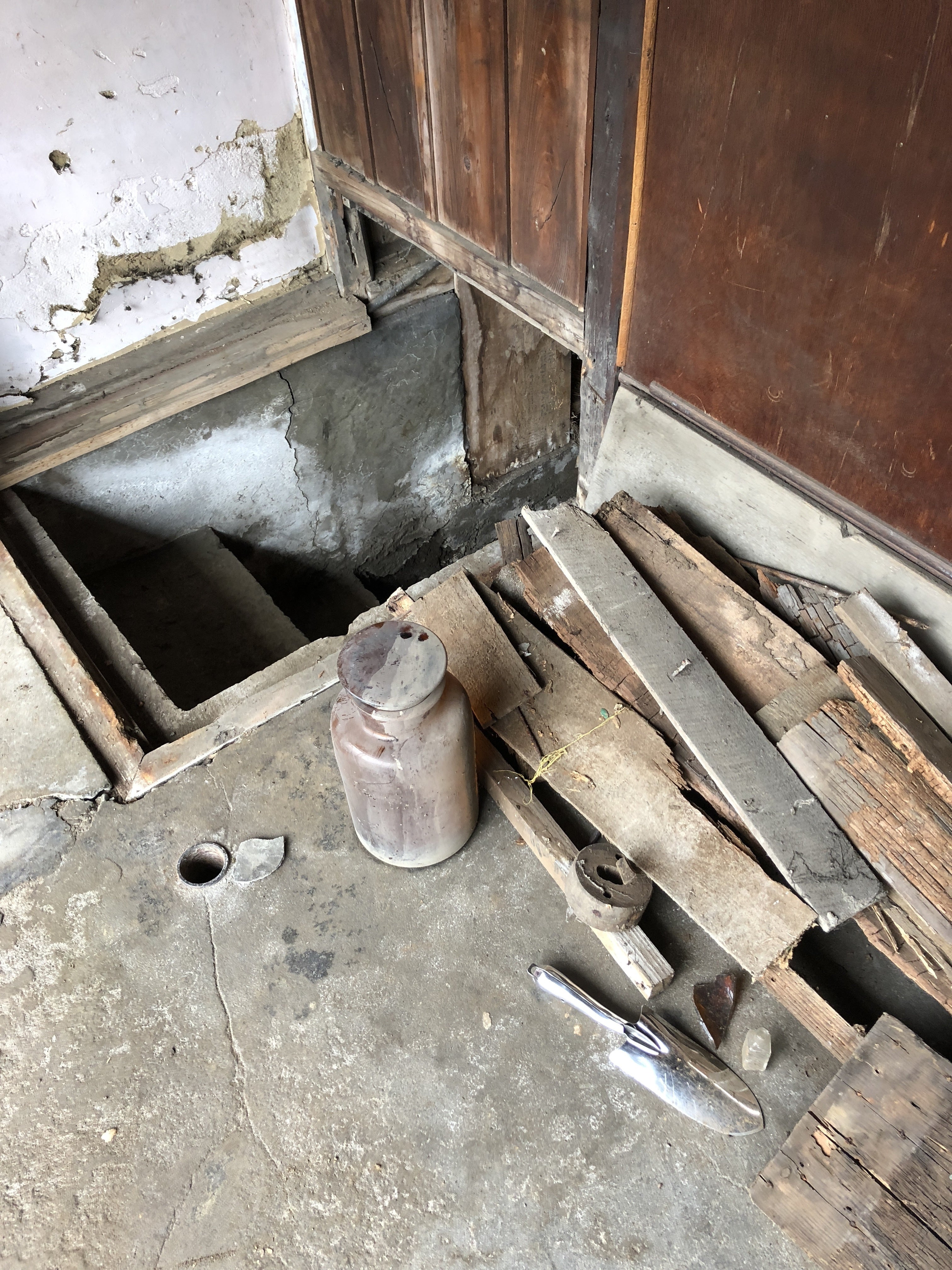 表土間には地下室から出土した廃材を置いていたのだが