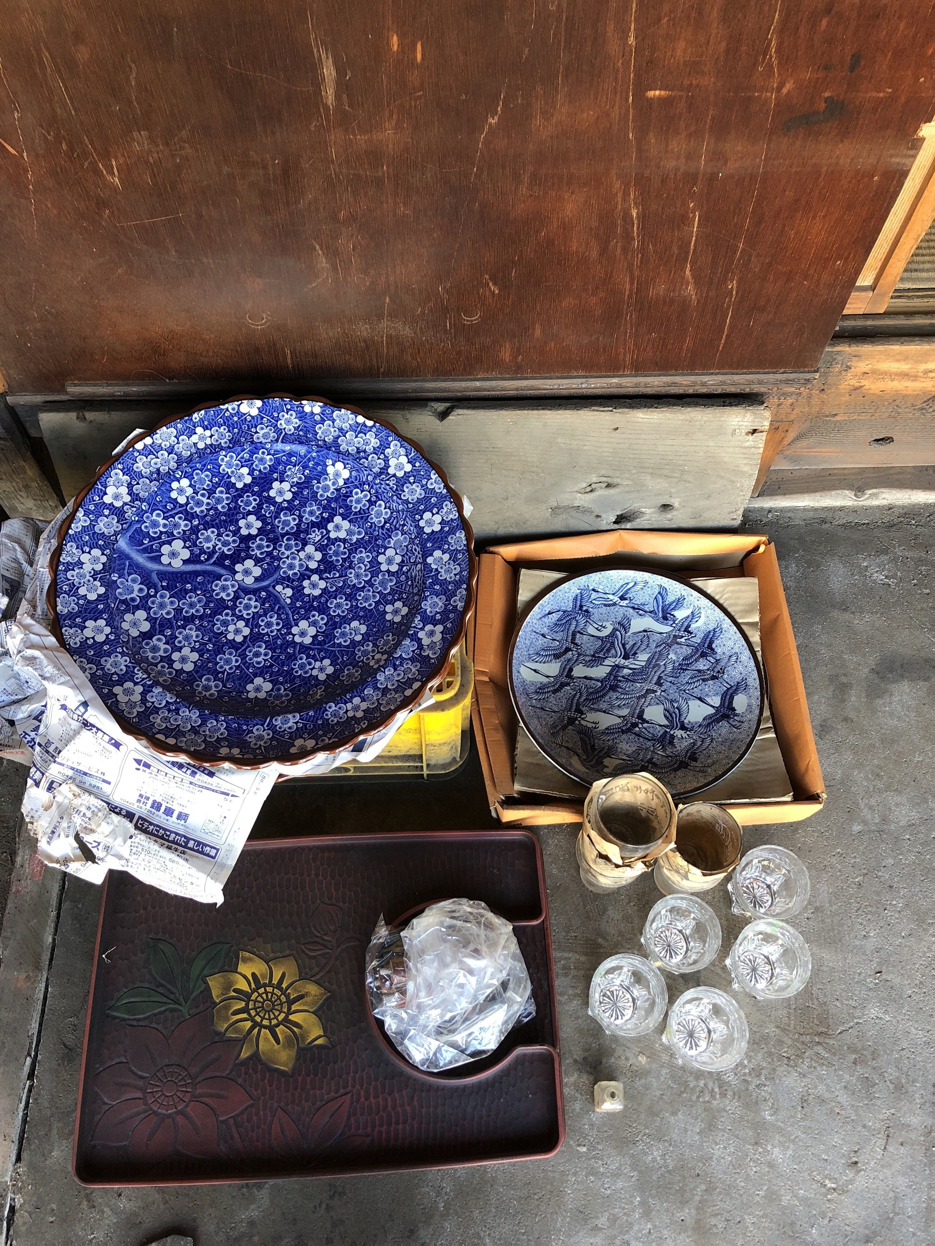裏土間にひしめく出土品を表土間に少しだけ出土品を並べる。(全部は数が多すぎて無理)