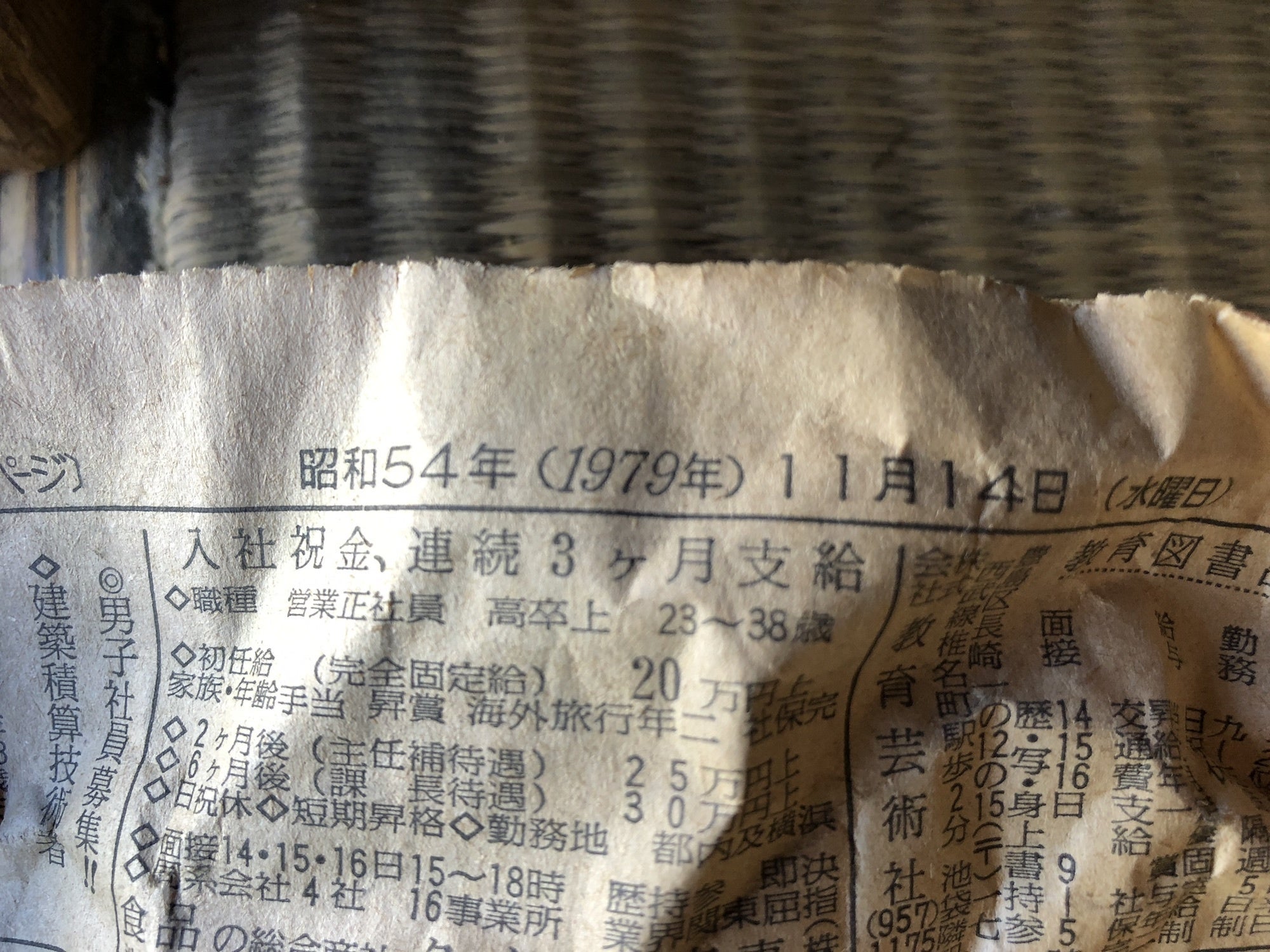 包んでた新聞紙は1979年11月14日のもの。