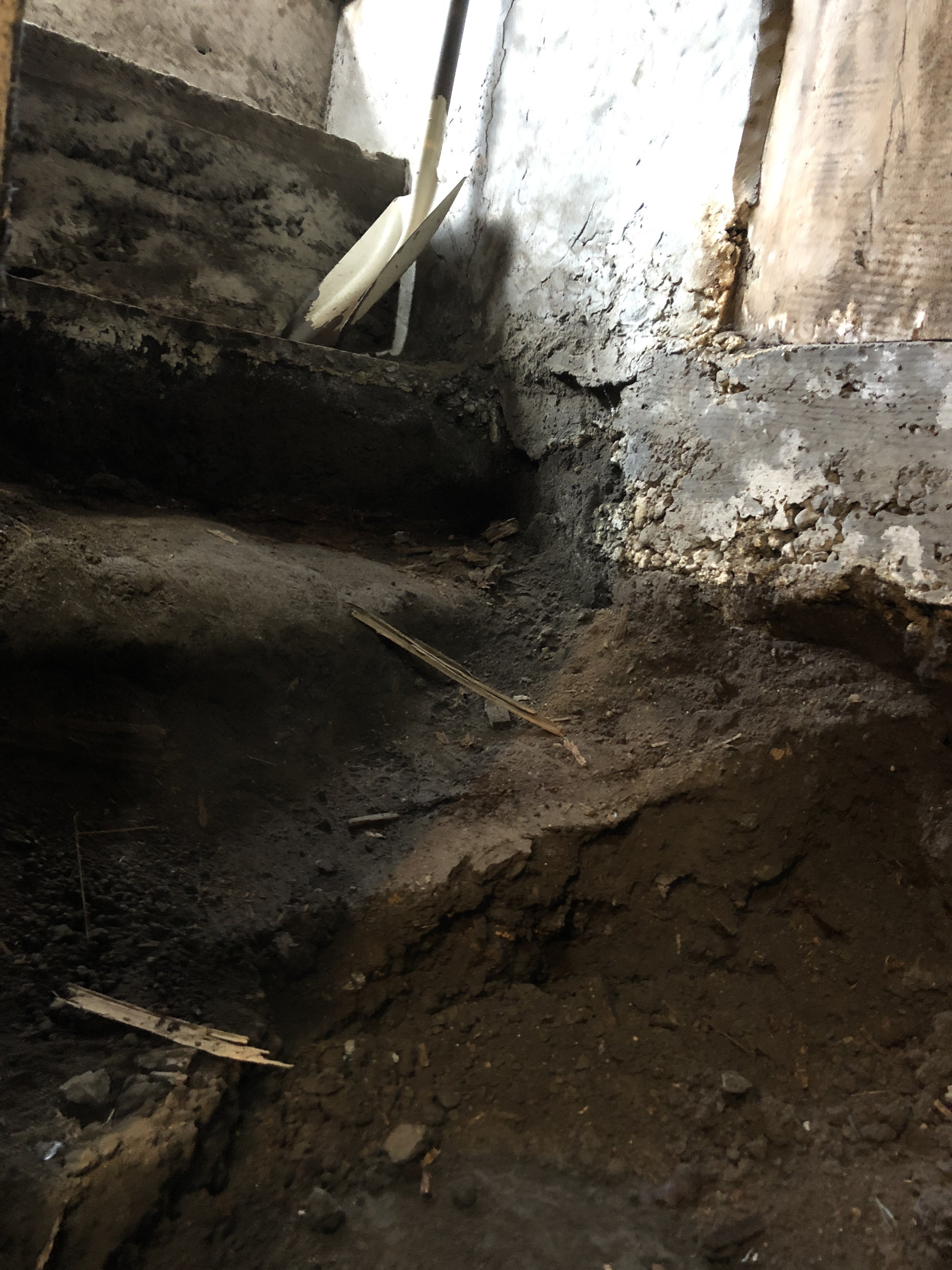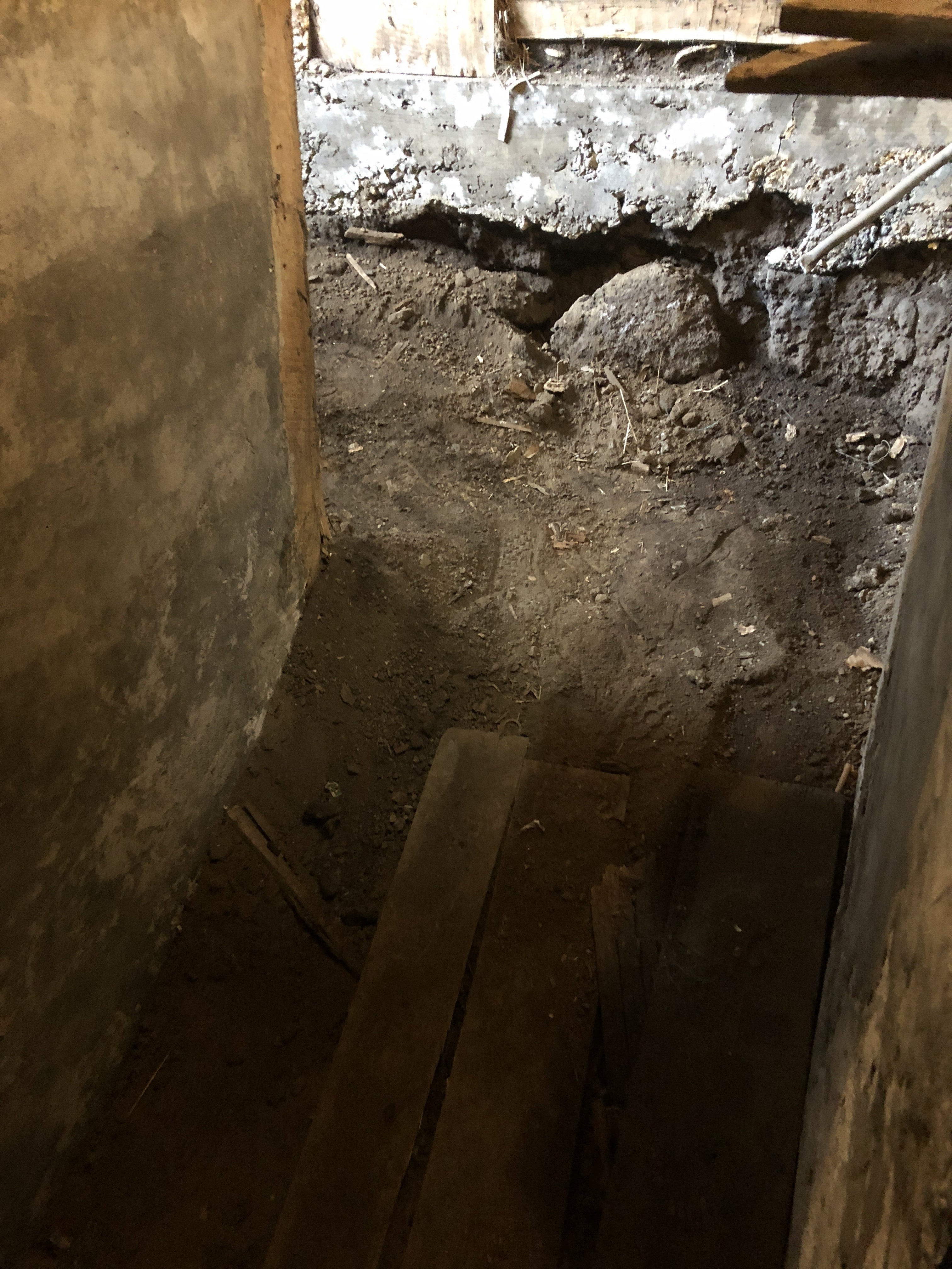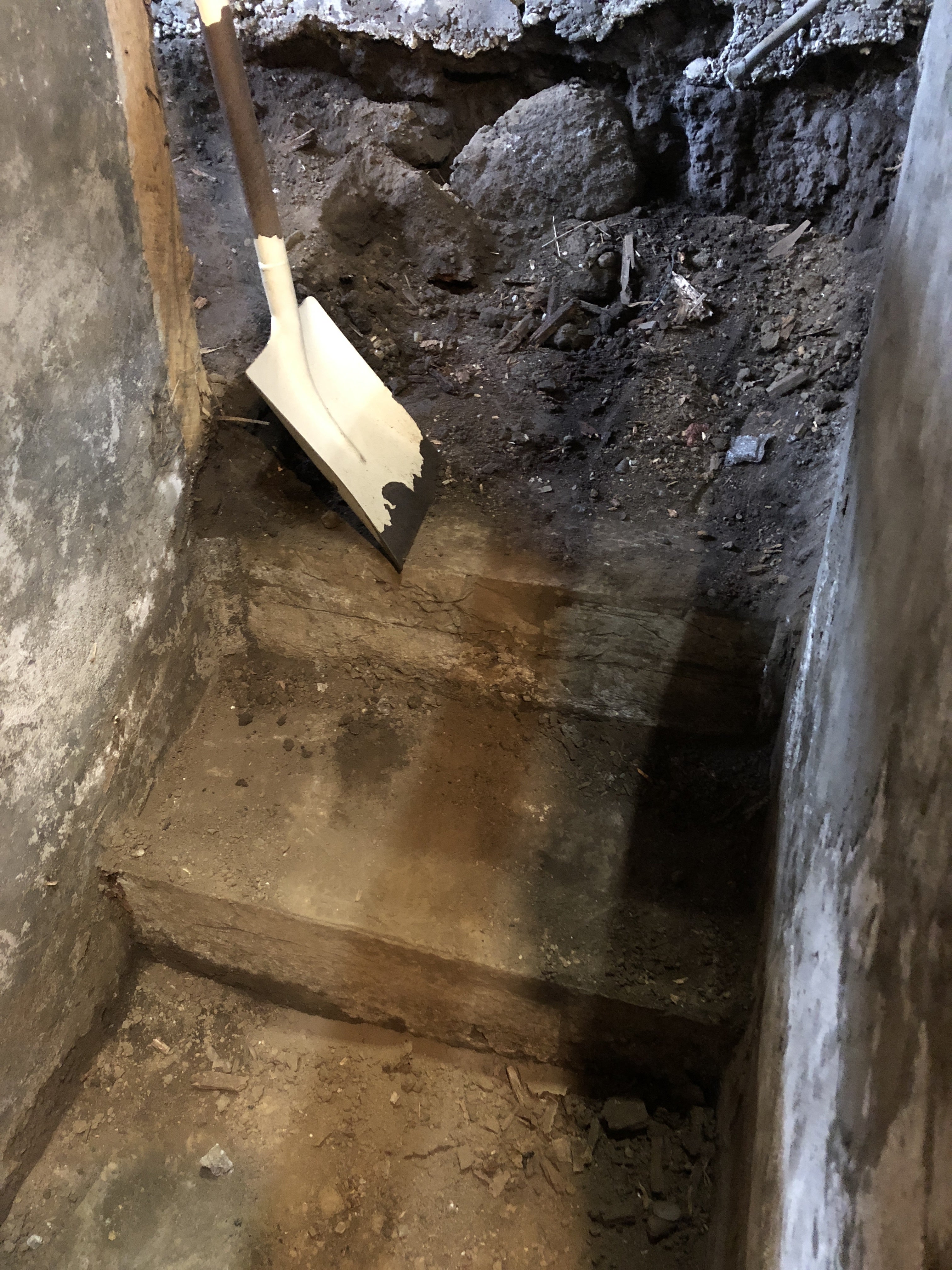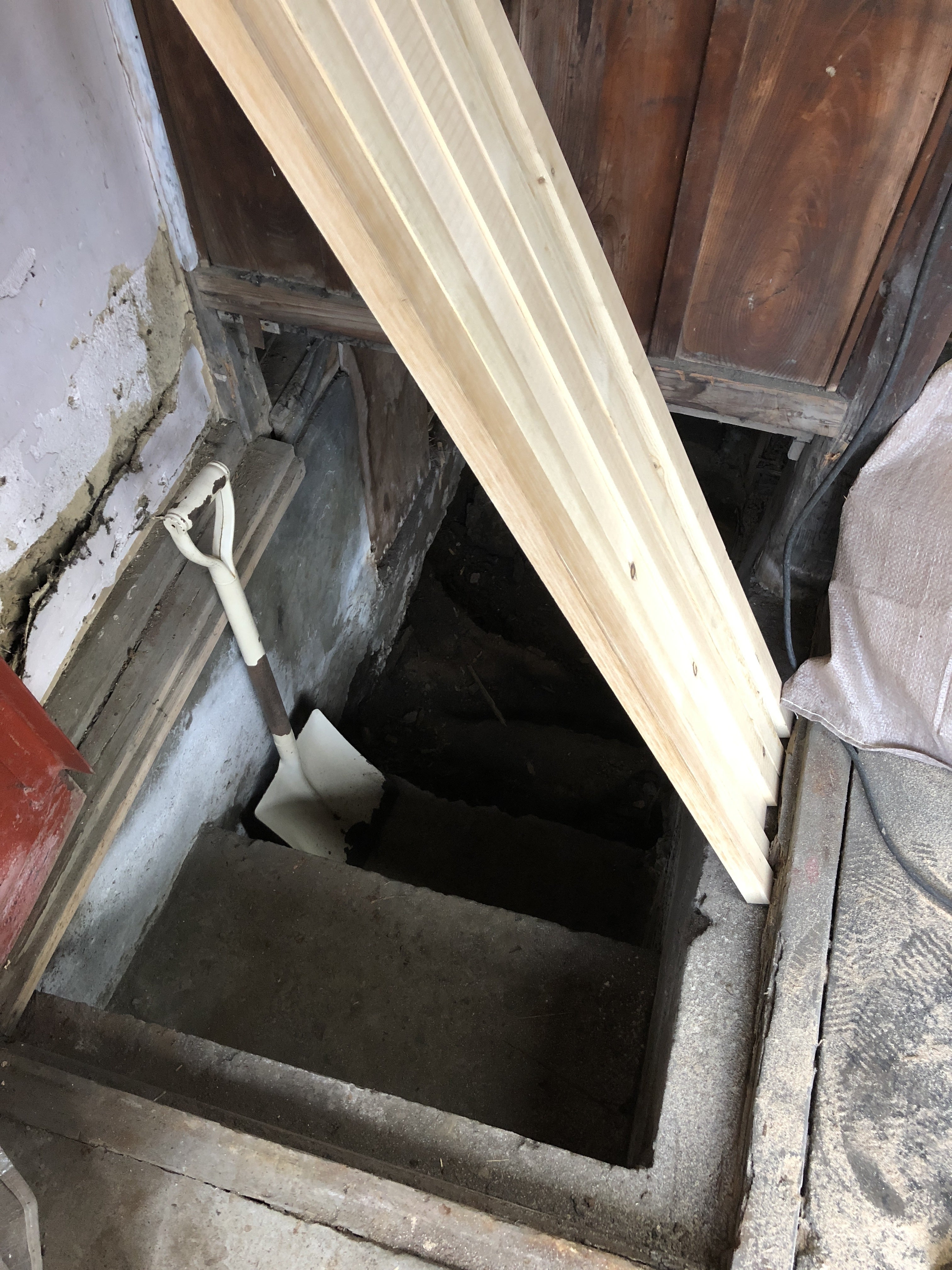 地下室への土の階段部分が崩れてしまった。