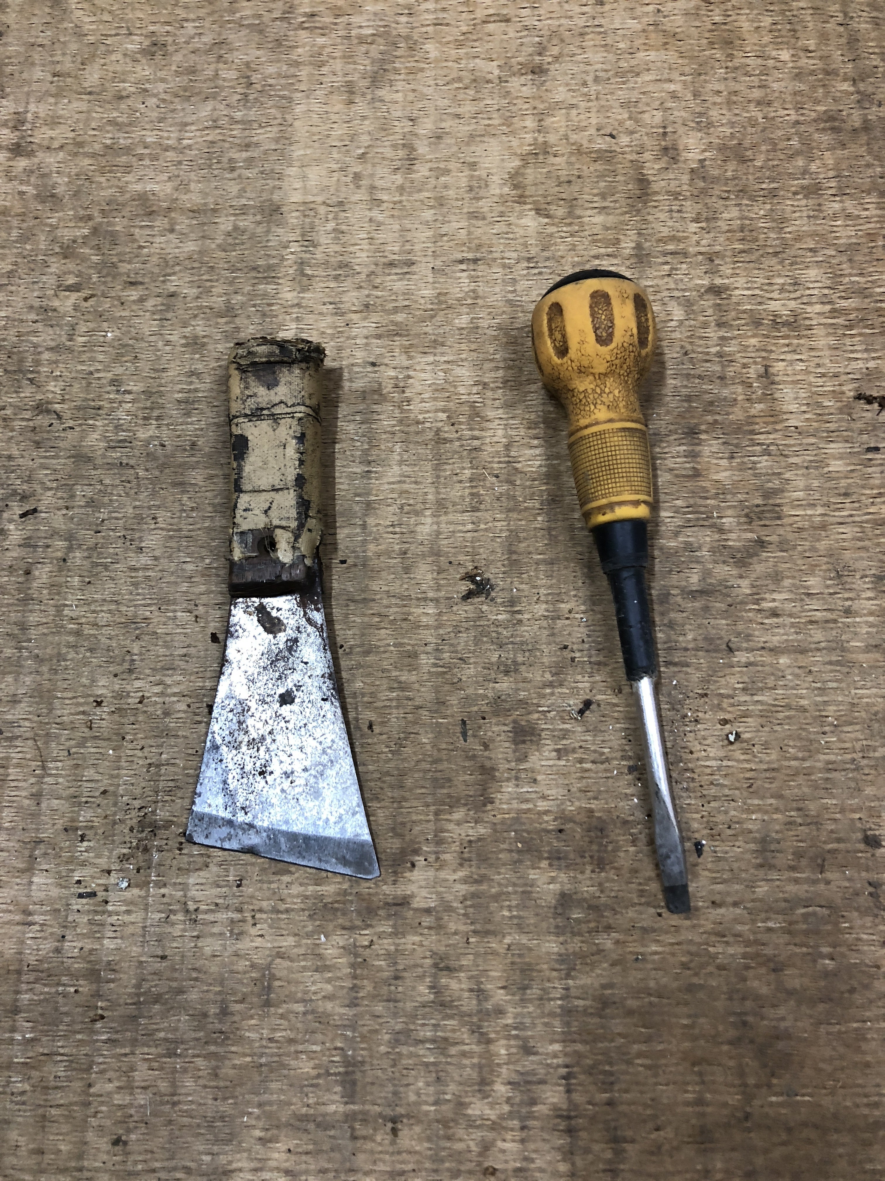 マイナスドライバー(右)と比べると削る幅が雲泥の差である。