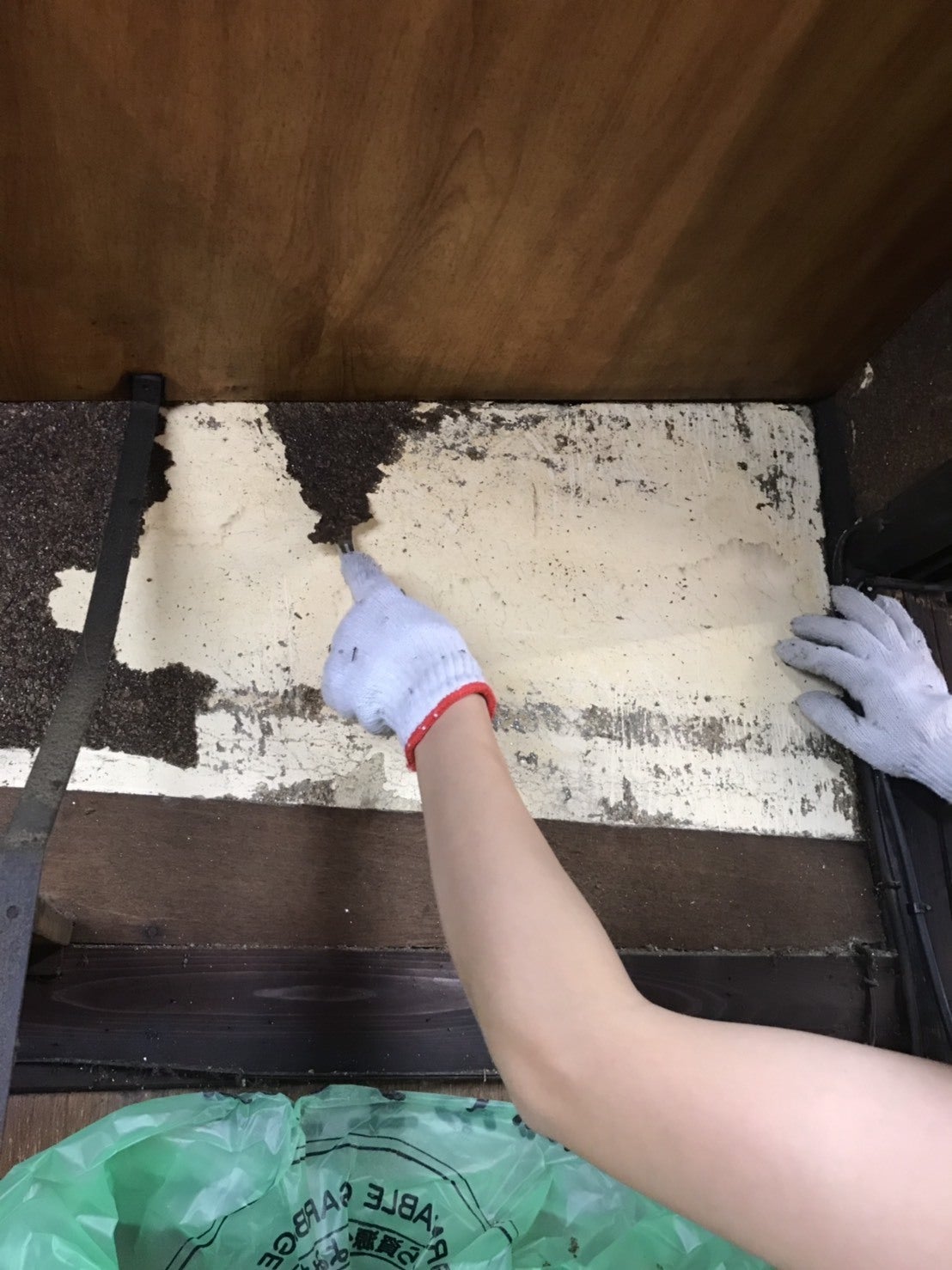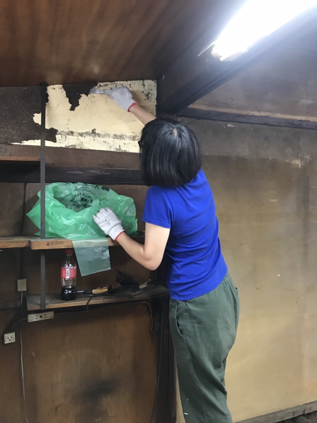 タタミ部屋の砂壁を剥がす作業に取り掛かった。
