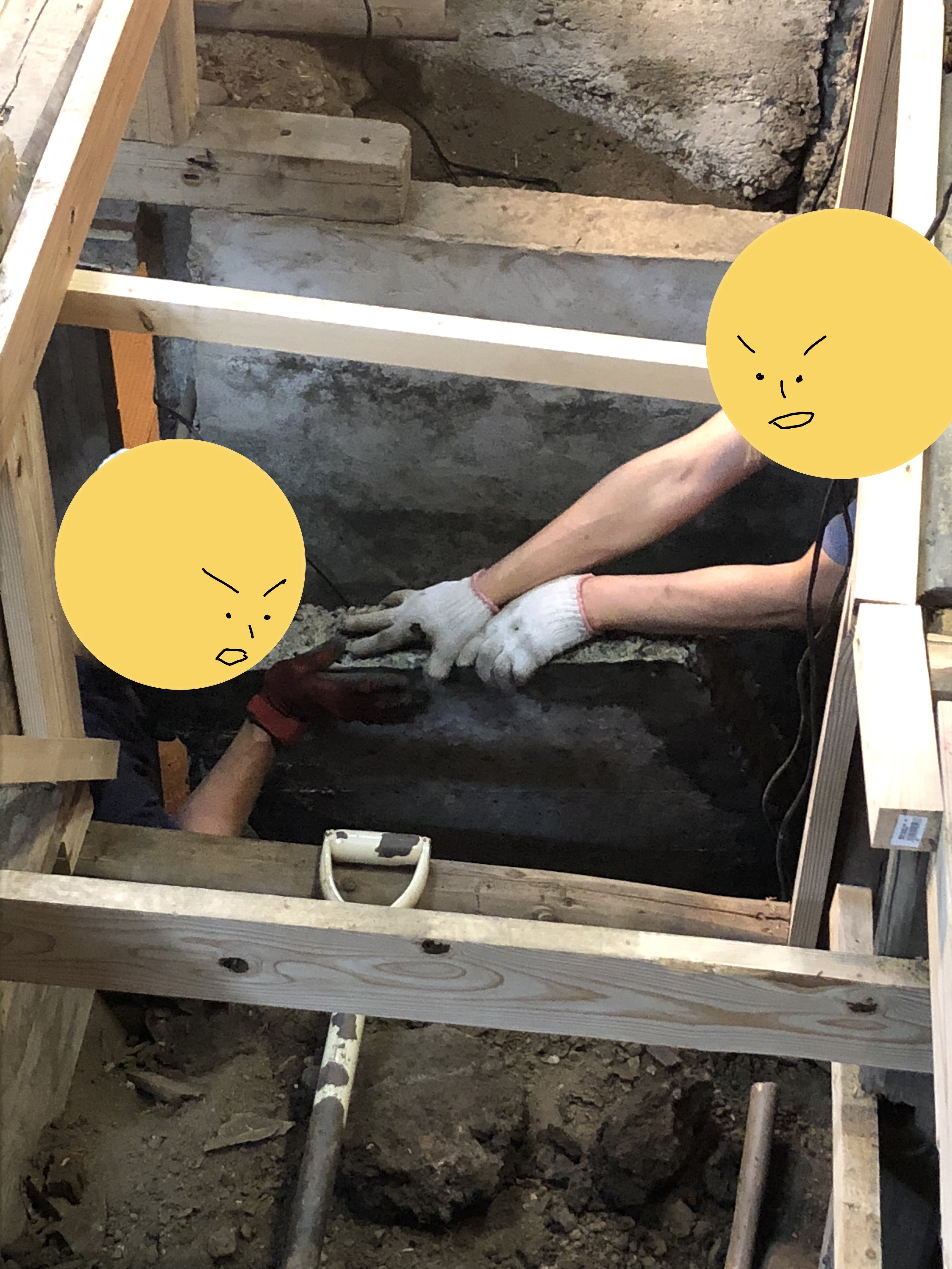 妖怪ぬりかべ土留めを運ぶ大工さんズ。